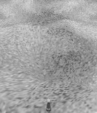 ボス周囲のゆらぎエフェクト(シェーダ版)です。 ←の画像ではゆらいでいるのがわかりづらいので 実際の動きは本体付属のサンプルスクリプトを実行お願いします。 以下の手順で行えます。 1) 描画用テクスチャに背景を描画する。 2) 背景を描画したテクスチャをゆがませて、画面に描画する。 |